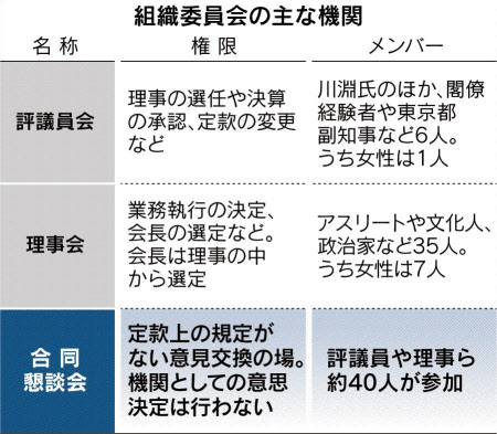 森氏は懇談会では、辞任に至る経緯について謝罪。ただ、自身の発言を巡っては「男性よりも余計女性の皆さんに発言してもらうように、絶えず進めてきた」と持論を展開。参加選手の男女比率をほぼ同じとしてきたことなどを披露し、「完璧な仕上がりができたと思っている」と訴えた。
