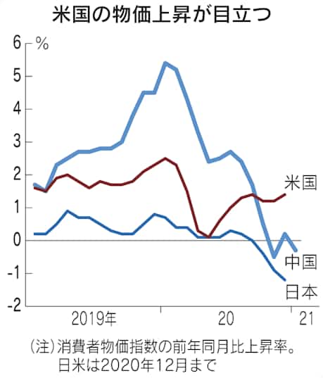 先進国共通の低インフレという長期トレンドはそう簡単には変わらない。だが今後、ワクチンの普及や内需を刺激する財政出動が続けば、一時的に過度なインフレにつながる懸念がある。サマーズ元財務長官はバイデン政権の1.9兆ドルの経済対策を過大と批判し「インフレリスクに警戒すべきだ」と主張する。「物価が上昇し始めた場合、連邦準備理事会(FRB)がうまく制御できるとは限らない」